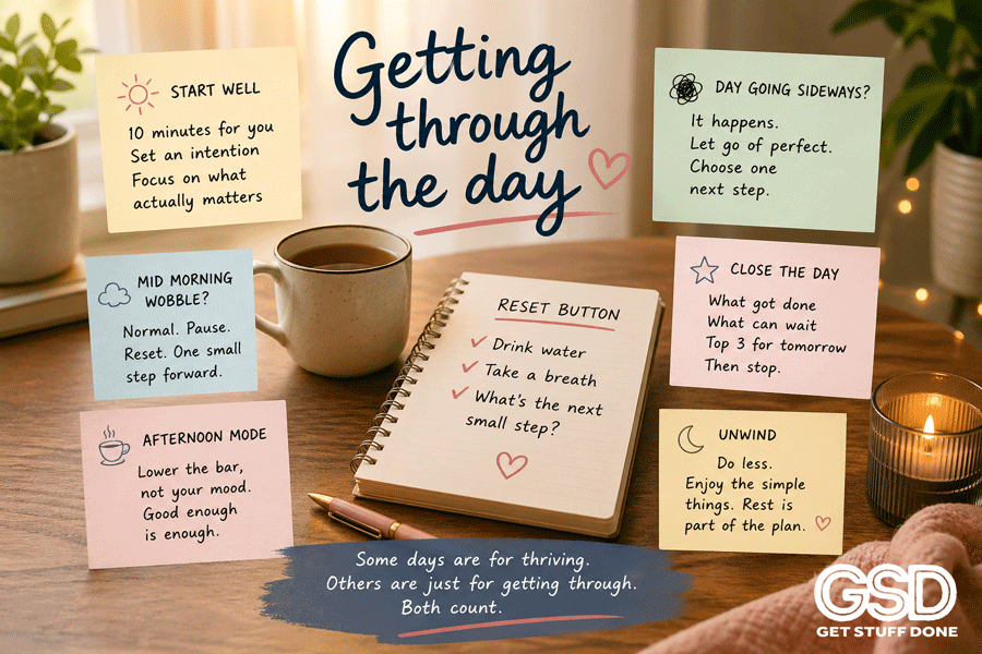 This isn’t about having a perfect day. It’s about getting through it in one piece, maybe even feeling OK by the end of it. And if we can set tomorrow up to feel a little bit lighter, even better.